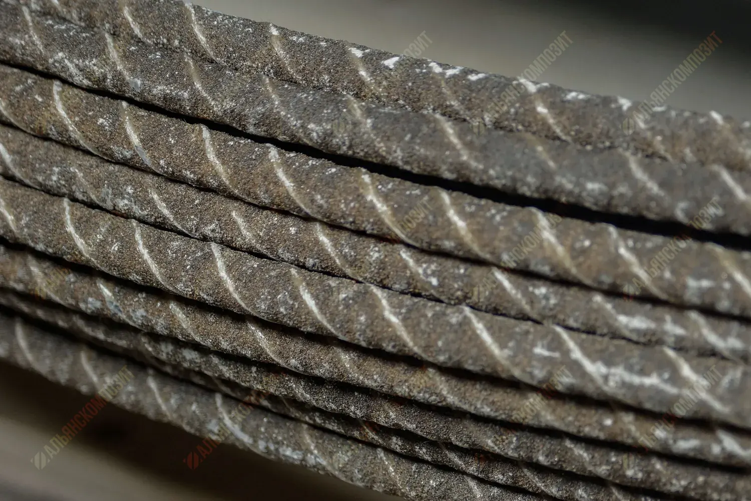 Арматура имеет внешнюю навивку из стекловолокна образуя"ребро" арматуры. Дополнительное внешнее ребро придает стержню периодический профиль, создает анкеровку в бетоне и увеличивает поверхность арматуры, что повышает сцепление стержня с бетоном.